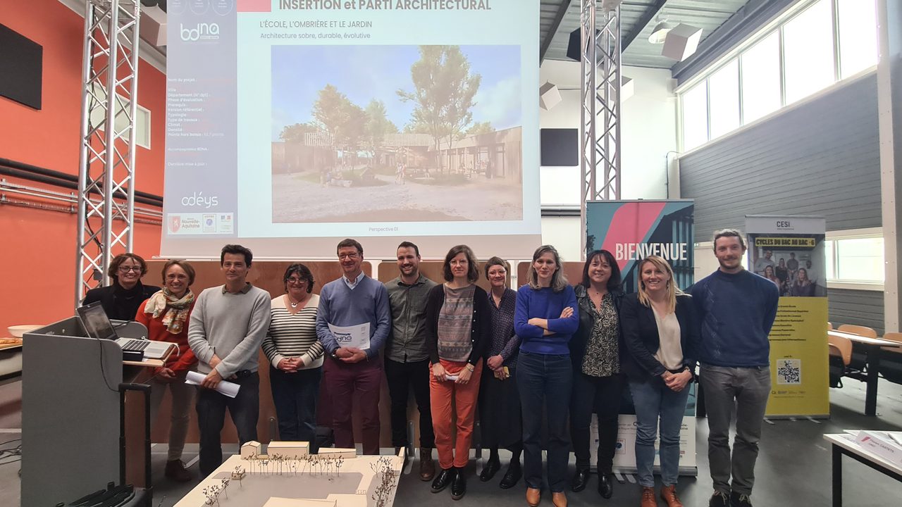 Le projet Ecole de Bourgneuf (17) « l'école, l'ombrière et le jardin »a été évalué et labellisé « bâtiment durable Nouvelle aquitaine », niveau médaille argent, stade conception; niveau médaille or, obtenu en phase chantier. Le label agit en faveur d'une construction durable, en évaluant les critères tels que la gestion de projet (démarche concertée), le territoire situé (conception bioclimatique, frugalité, inclusion), l'économie sociale (mutualisation, filières, réemploi), le confort d'usage, les énergies et les ressources mobilisées, la santé et le paysage vertueux.